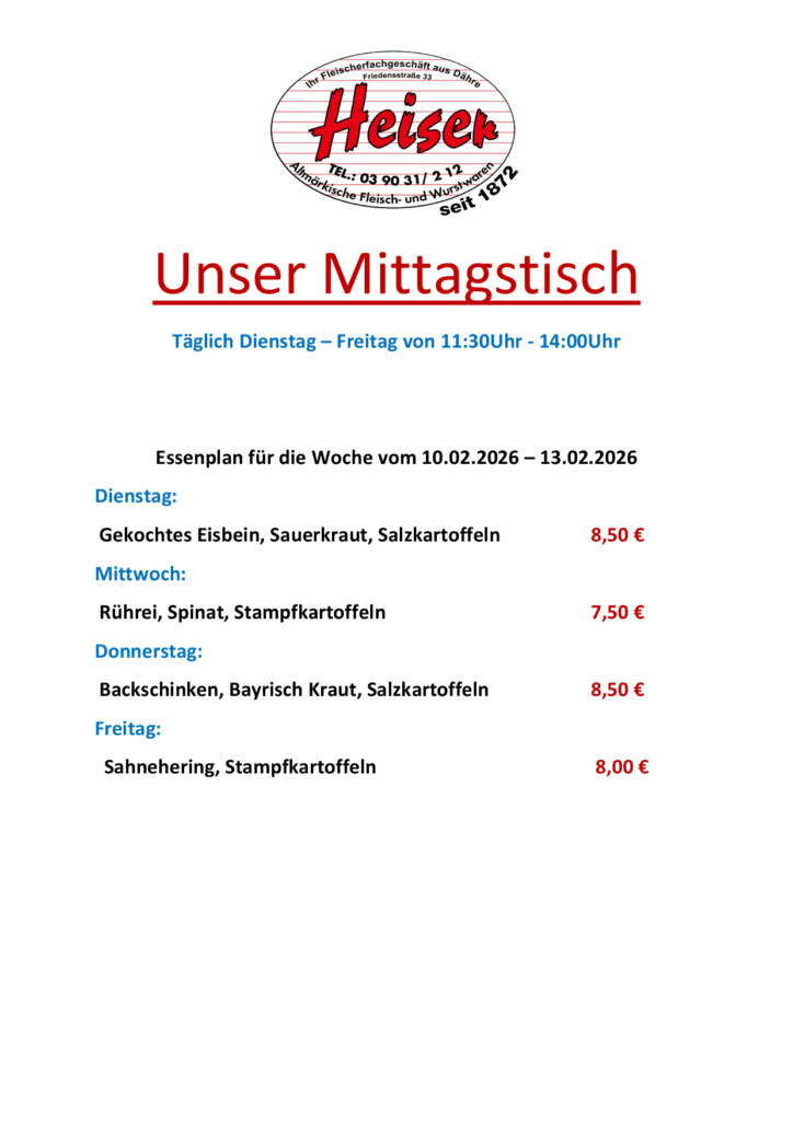 UNSER ESSENPLAN VOM 10.02.2026 – 13.02.2026von shop@fleischerei-heiser.de5. Februar 20265. Februar 2026