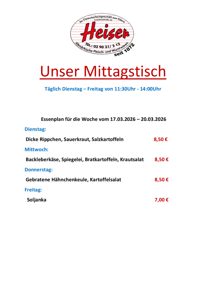 UNSER ESSENPLAN VOM 17.03.2026 – 20.03.2026