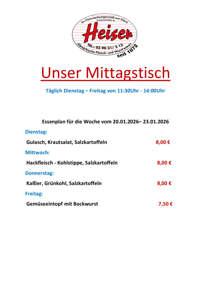 UNSER ESSENPLAN VOM 20.01.2026 – 23.01.2026von shop@fleischerei-heiser.de6. Januar 20266. Januar 2026